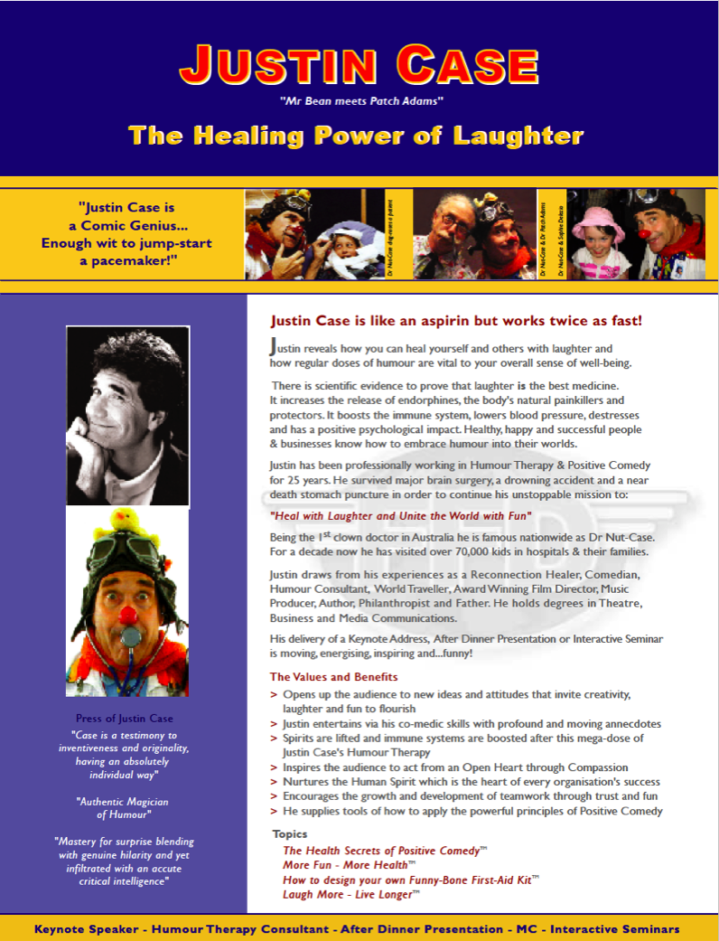 Co-creating Clown Doctors Australia in 1996 - he went on to help build and train over 85 Clown Doctors and now they regularly visit all the Kids Hospitals all over Australia.