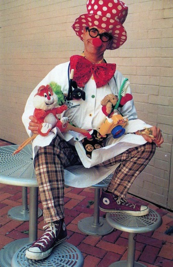 He travels the world teaching workshops, training performers and medical practioners, giving seminars, lectures, talks and still visits sick kids in hospitals.